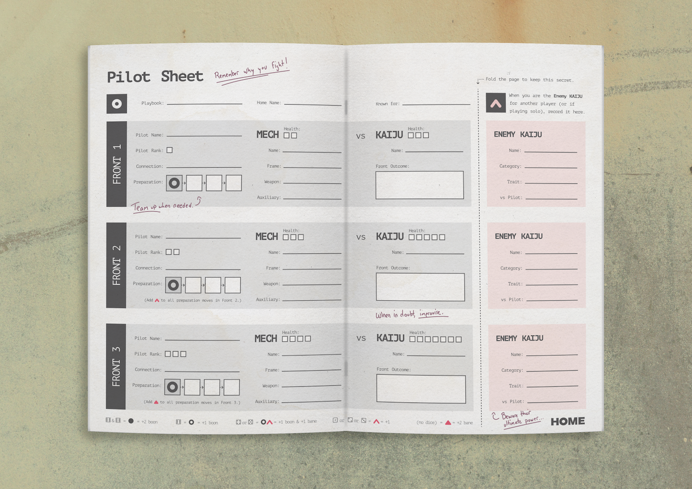 HOME is a roleplaying and mapmaking game putting you in the boots of a mech pilot who must protect their home from Kaiju.