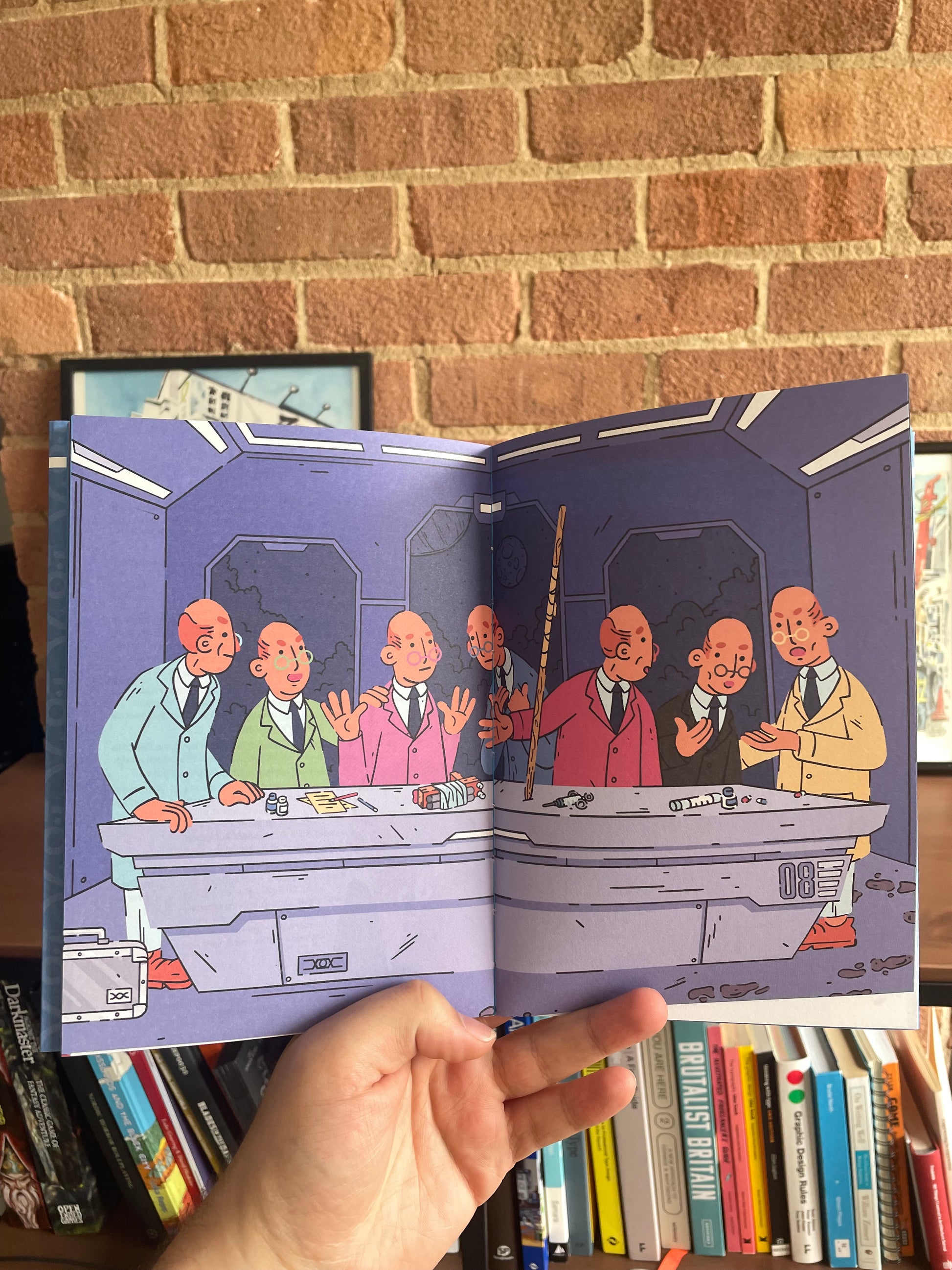 An A5, 72 page book printed lithographically on the fanciest paper we could get our hands on with an exposed spine, custom blue threading, and layflat binding. For the paper nerds: we're printing on Arctic's Munken Lynx.