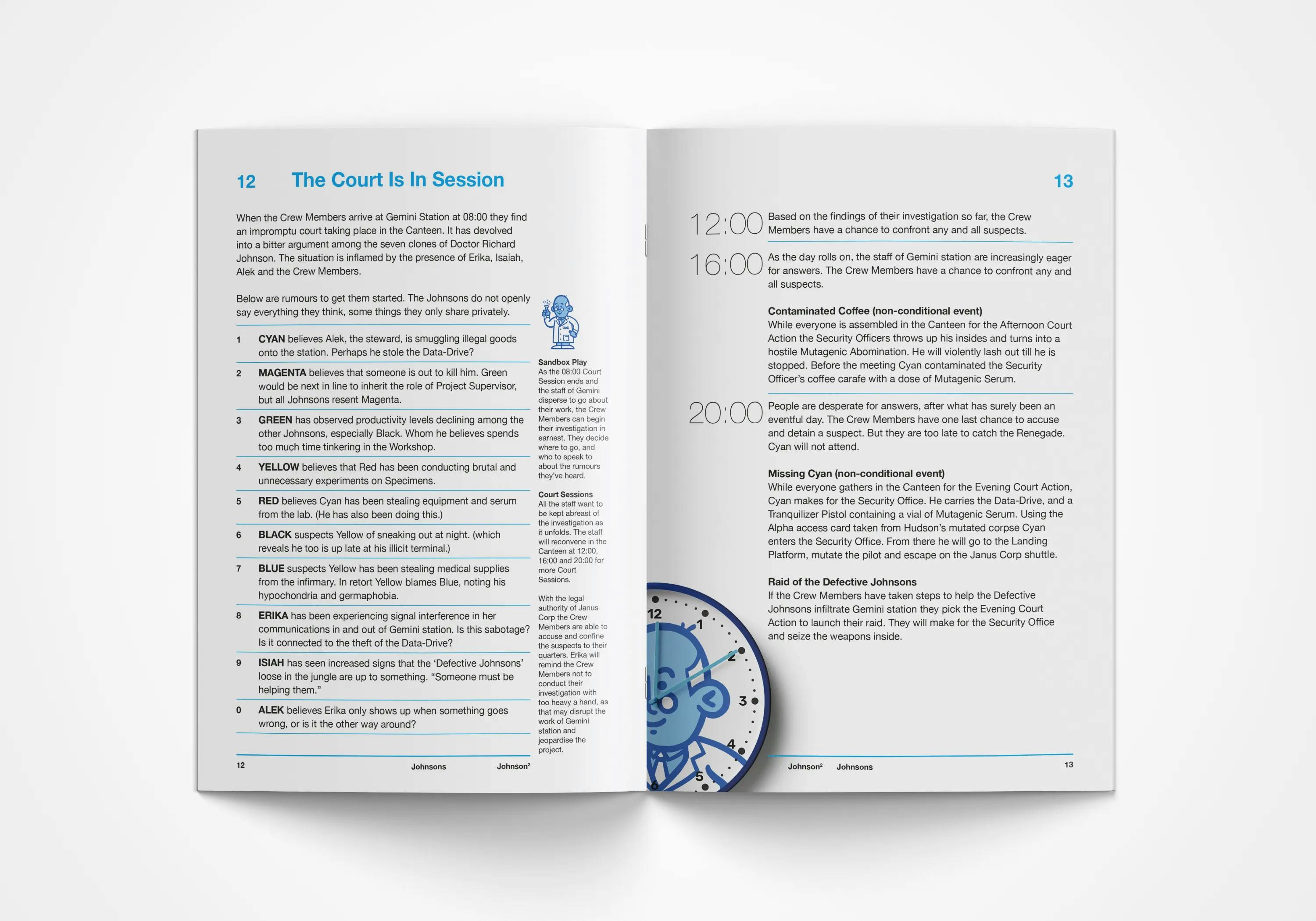 Deputised with the full legal powers of Janus Corp, the Crewmembers must identify a rogue scientist leaking data off-colony. The only problem: everyone on the station is an exact clone of the same man.