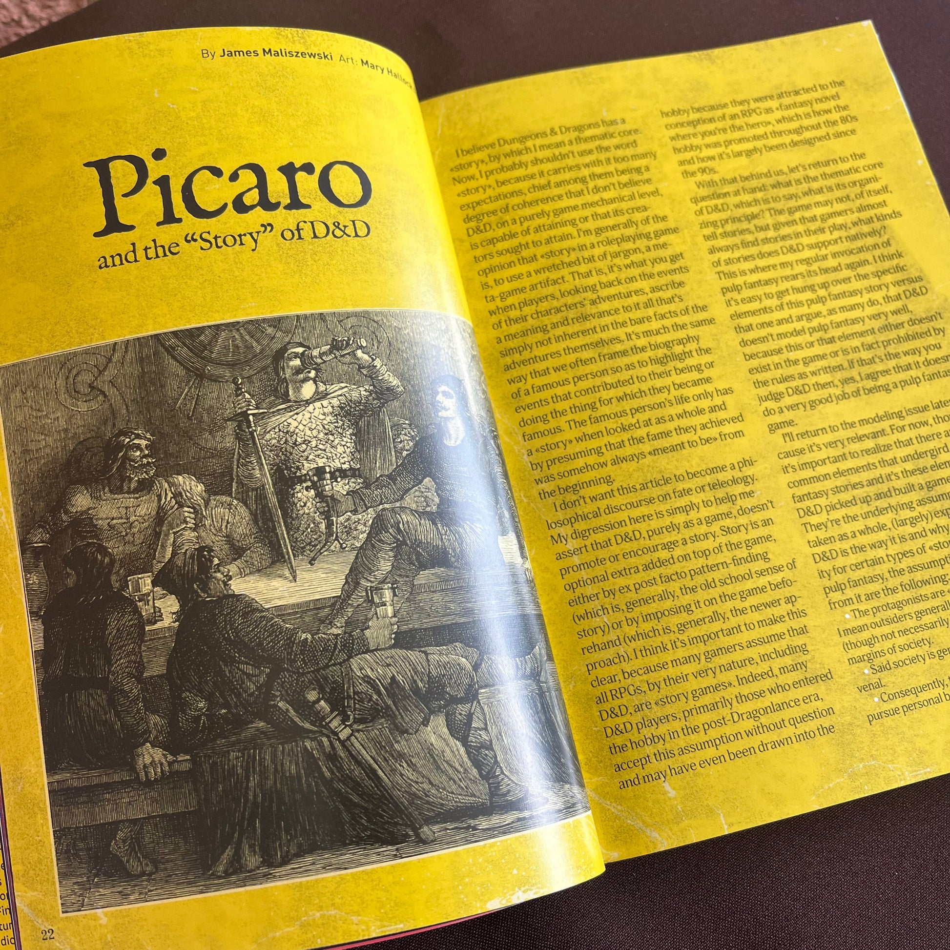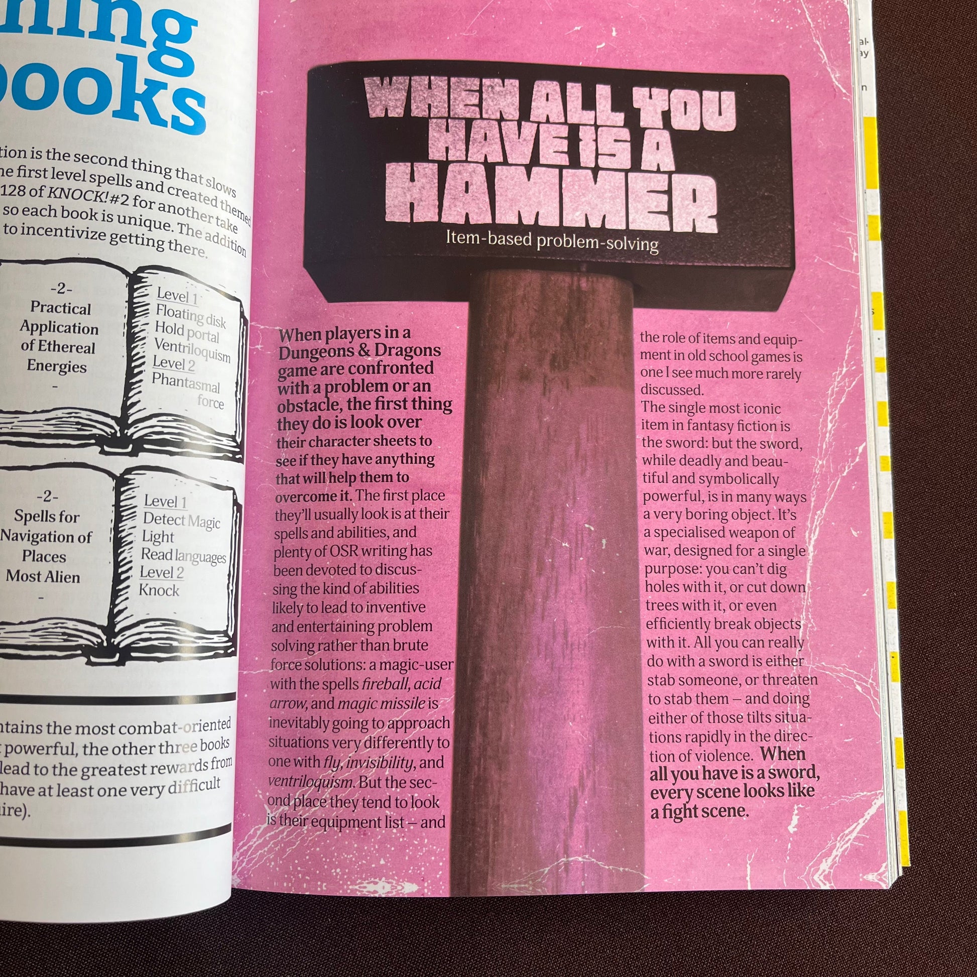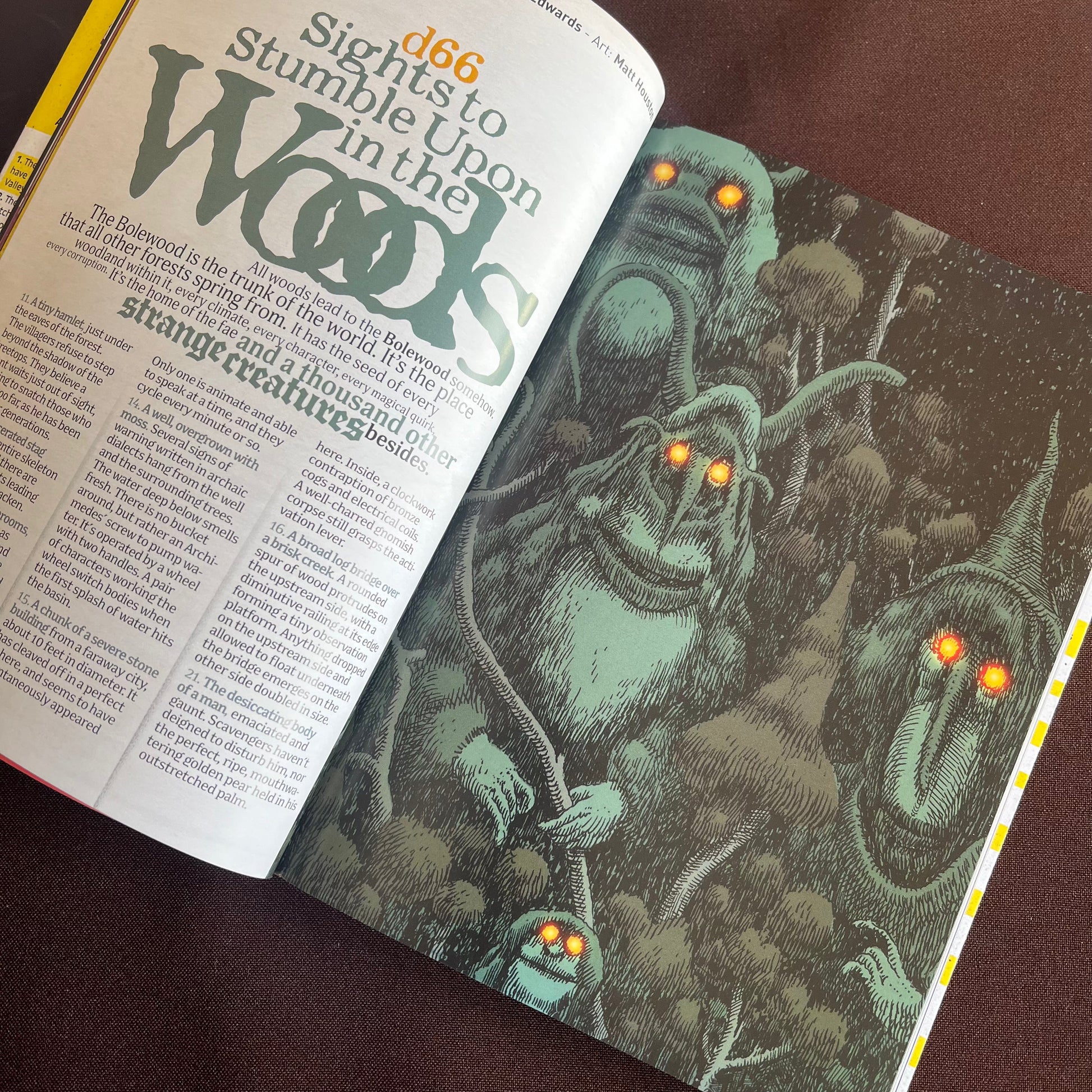 Once more, we've packed 212 pages full of adventure gaming goodness from every h(osr)rizon. Issue the Third is yet another thick, slick brick of that magical brew of old and new across the spectrum of our common interests: game design essays, refereeing advice and procedures, weird AF encounters and NPCs, a mini-game or two, and of course a helmetload of random tables for all sorts of uses. The Portfolio of Cartographic Curiosities contains seven maps, the Menagerie of Monstrosities is creaking under the weight of seven unique monsters, and the Retinue of Rogues presents six new classes for your classic deehendee.