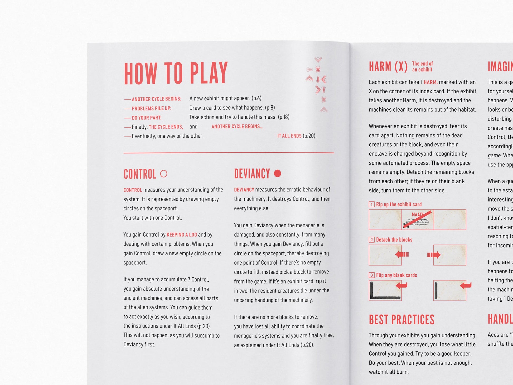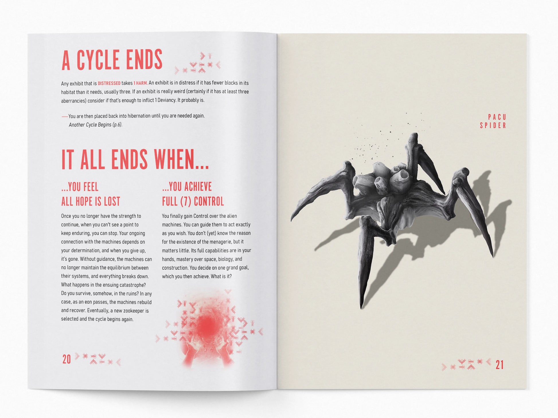 You play as the keeper of an ancient menagerie, created by a long-gone society and still operating. You create the story as you play, writing down some details, deciding how to care for the exhibits, and drawing cards to see what happens next.