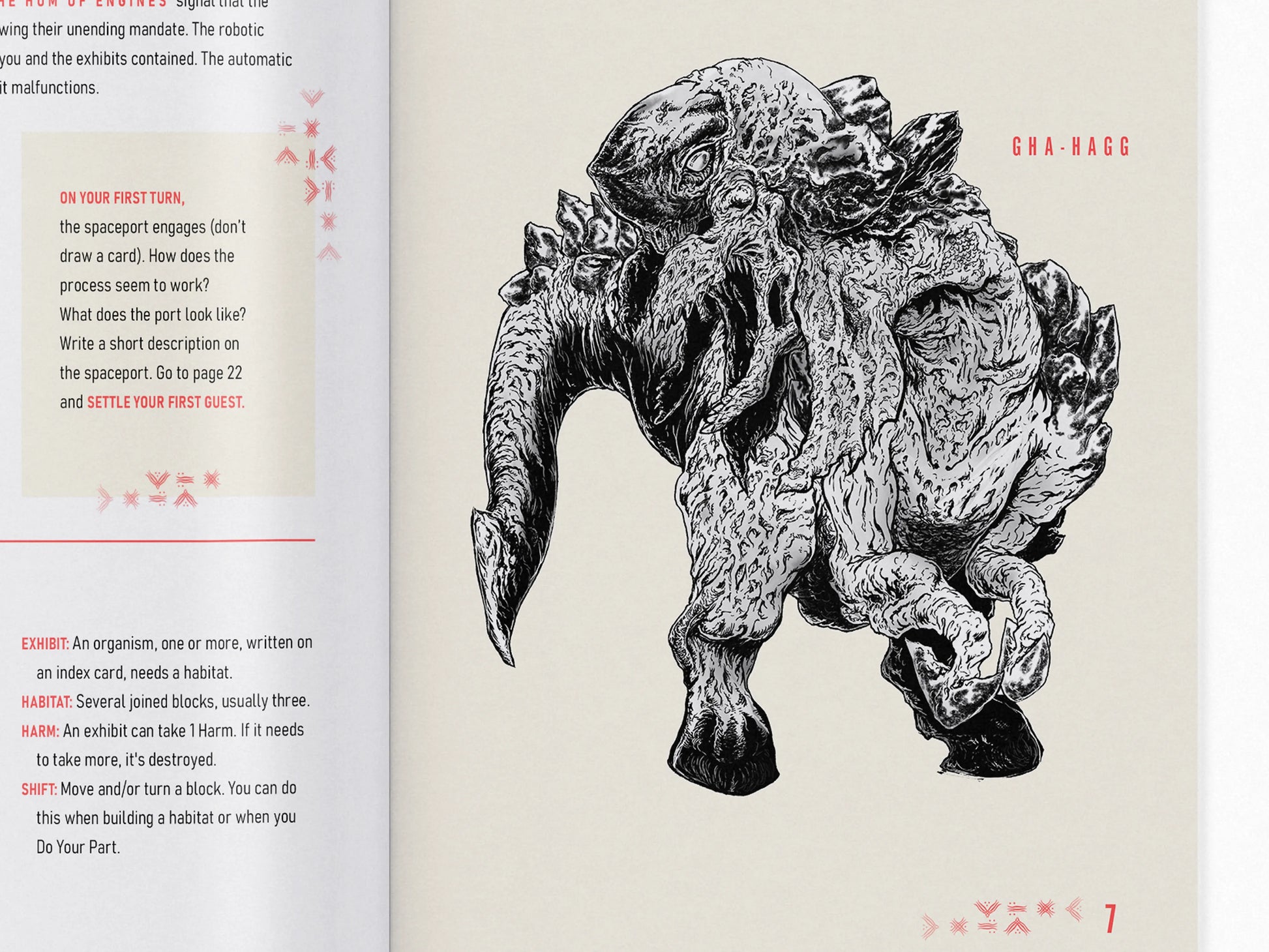 But something has malfunctioned. The stars are wrong. Through the window you see an old dusty planet, from which a beam of light emerges to engulf your ship as an alien presence integrates with your systems. Your gut lurches as you lose and regain consciousness—now you stand in a hall of groaning, rusty engines, the dried corpse of an alien creature before you.