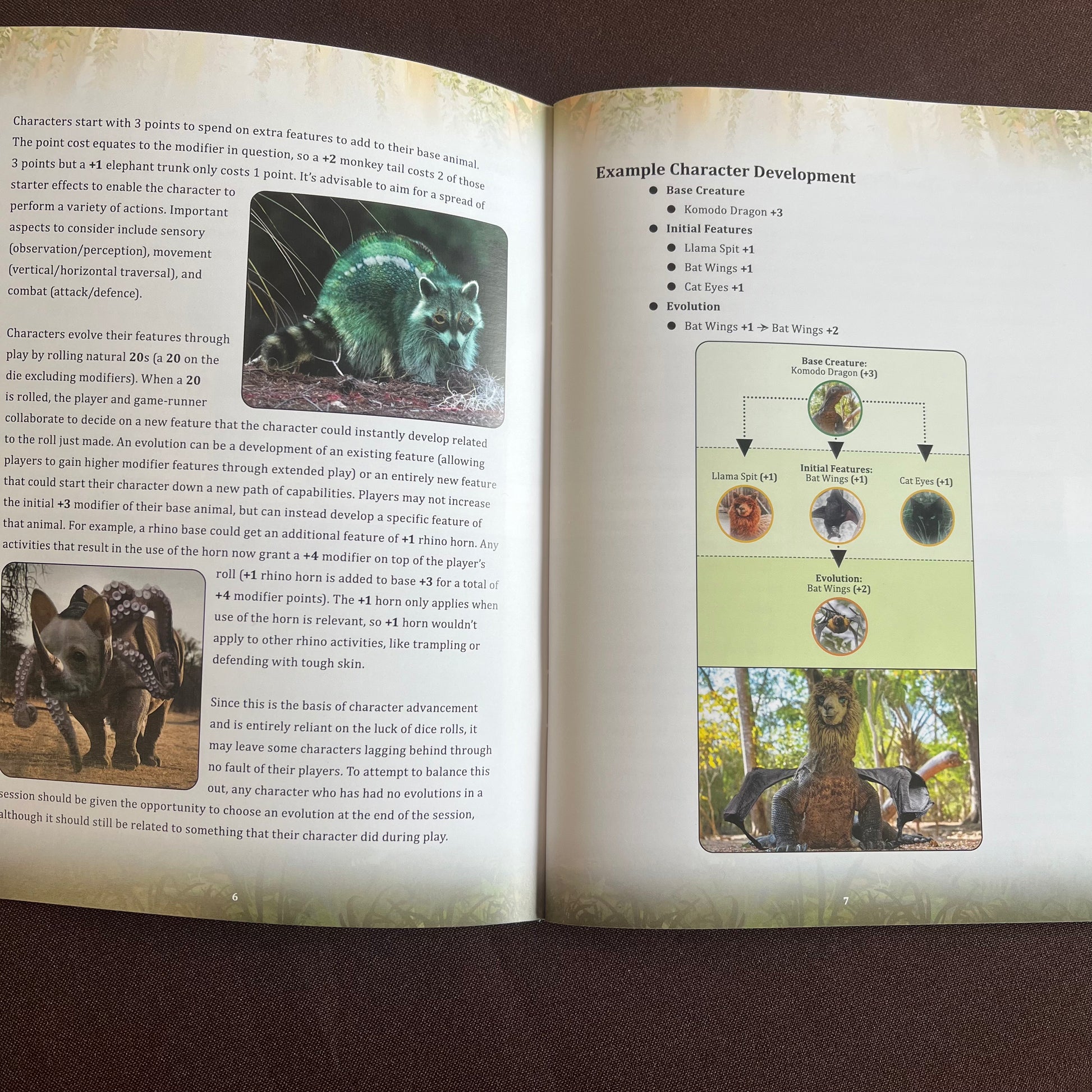Well you're in luck! With the Overgrown TTRPG you can be that dolphin-eagle-monkey! Or an octopus-dog-wasp. Or hippo-koala-snake. What are your favourite 3 animals? Merge them into one creature and play as them!