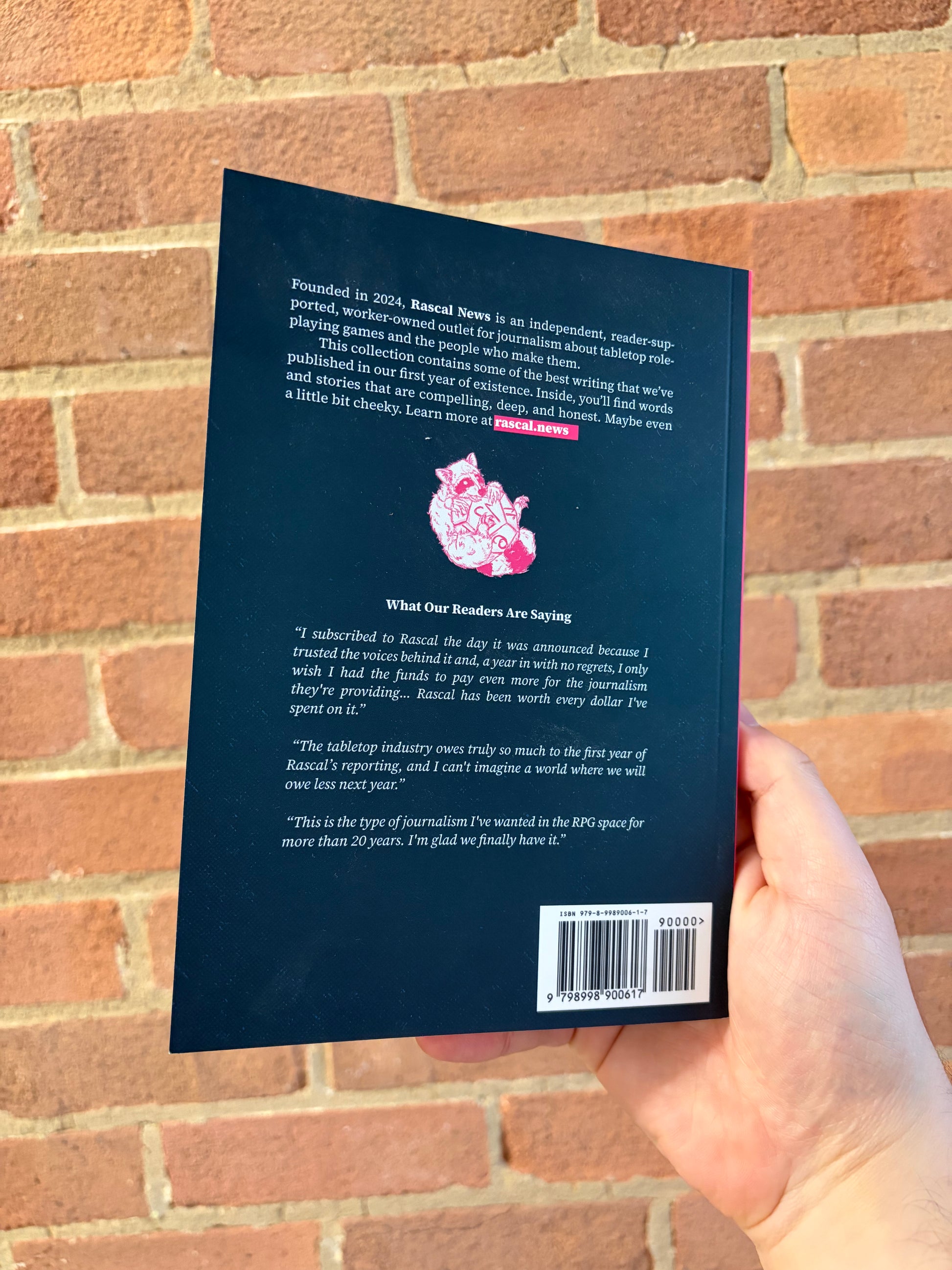 The Rascal Anniversary Zine collects the best of Rascal News writing from their first year of publication in a beautiful anthology featuring cover design by Will Kirkby (Eat the Reich). 50% of every sale goes to supporting their mission of worker-owned journalism in tabletop.