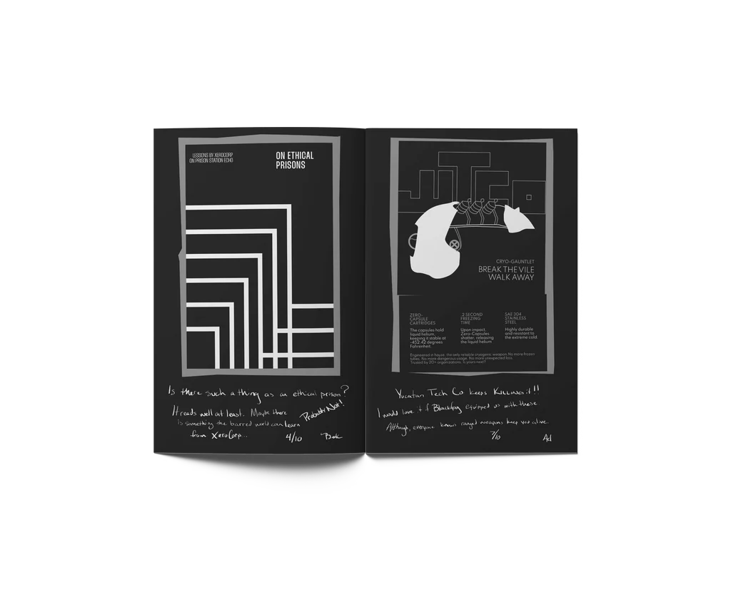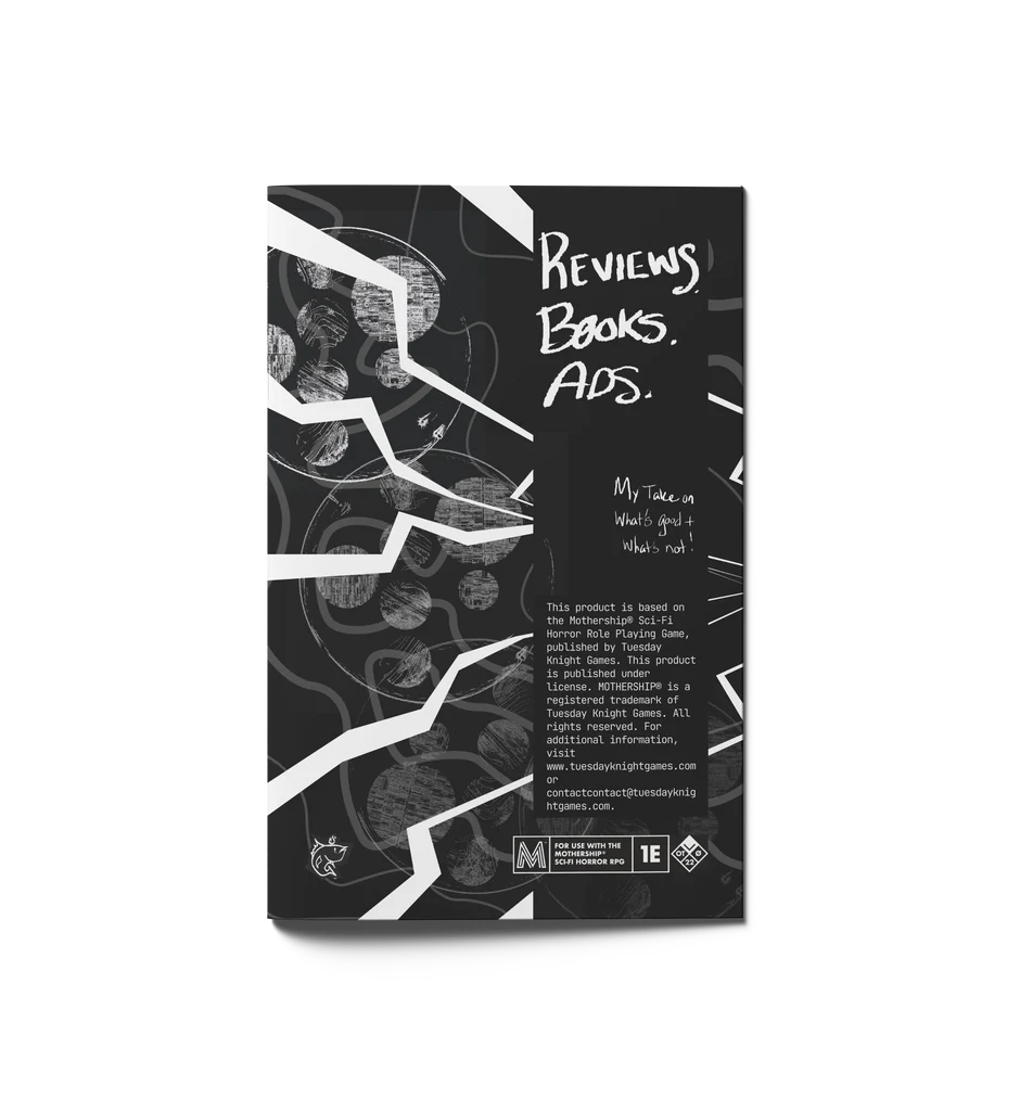 This zine provides context to the world Mothership players live in. The zine optionally ties-in/extends other Mothership 3PP zines including “The Cleaning of Prison Station Echo”, “Knights of Lazarus”, “Familiar Faces Vol.1”, “Incorporated Vol.1”, and “The Oceans Are Endless On Meridian”, and “5th Quinquennial Interstellar Interdisciplinary Conference”.