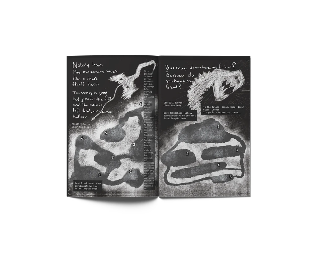 The zine optionally ties-in/extends other Mothership 3PP zines including “Familiar Faces Vol. 1” and “Outsourced” by Spicy Tuna RPG.