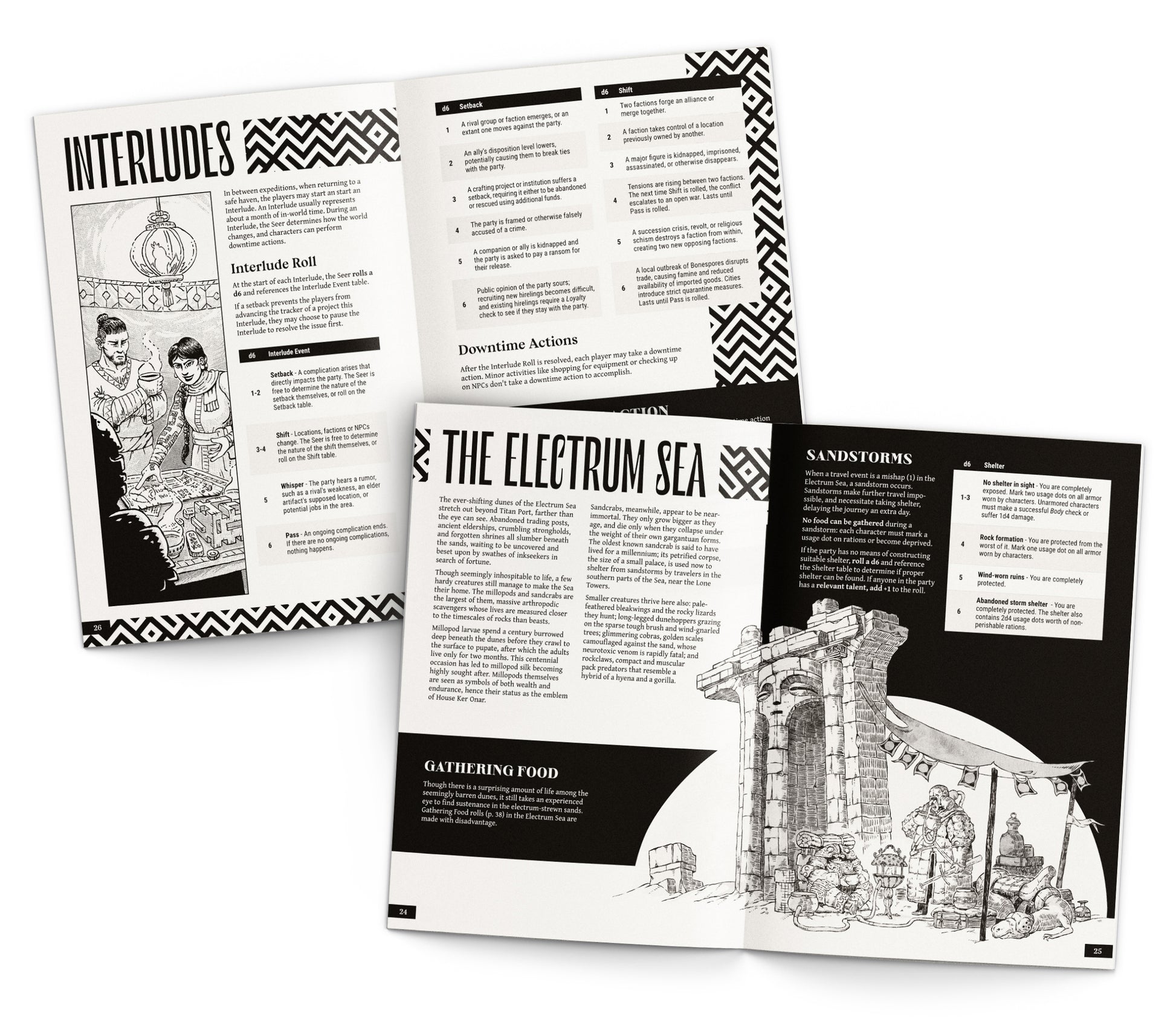 The Electrum Archive is a science-fantasy TTRPG zine series inspired by the worlds of The Elder Scrolls III: Morrowind, Dark Sun and Ultraviolet Grasslands. It uses simple core rules inspired by other OSR games like Cairn, Mausritter and Whitehack to quickly get you started playing.