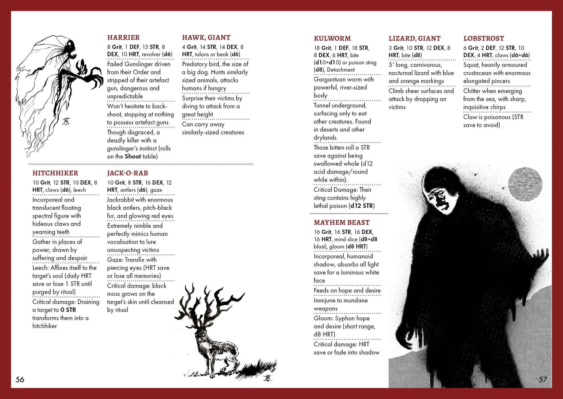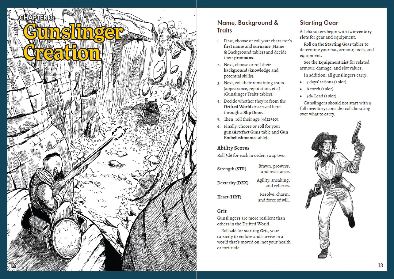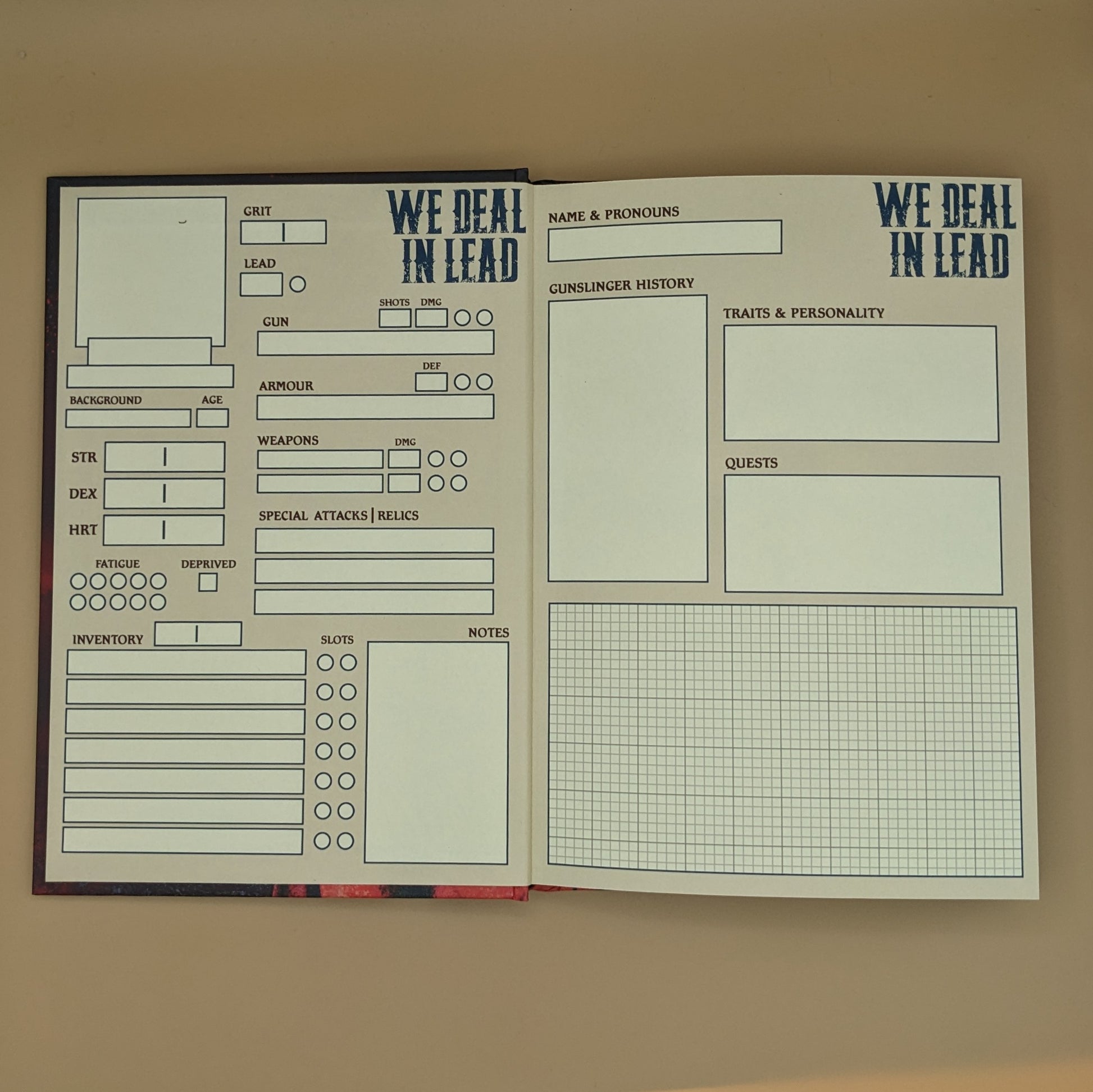 We Deal in Lead is a 88-page, full colour weird west wanders TTRPG by Colin Le Sueur for 1 or more players. Streamlined rules, fast character creation, and gameplay built on exploration and player choice.