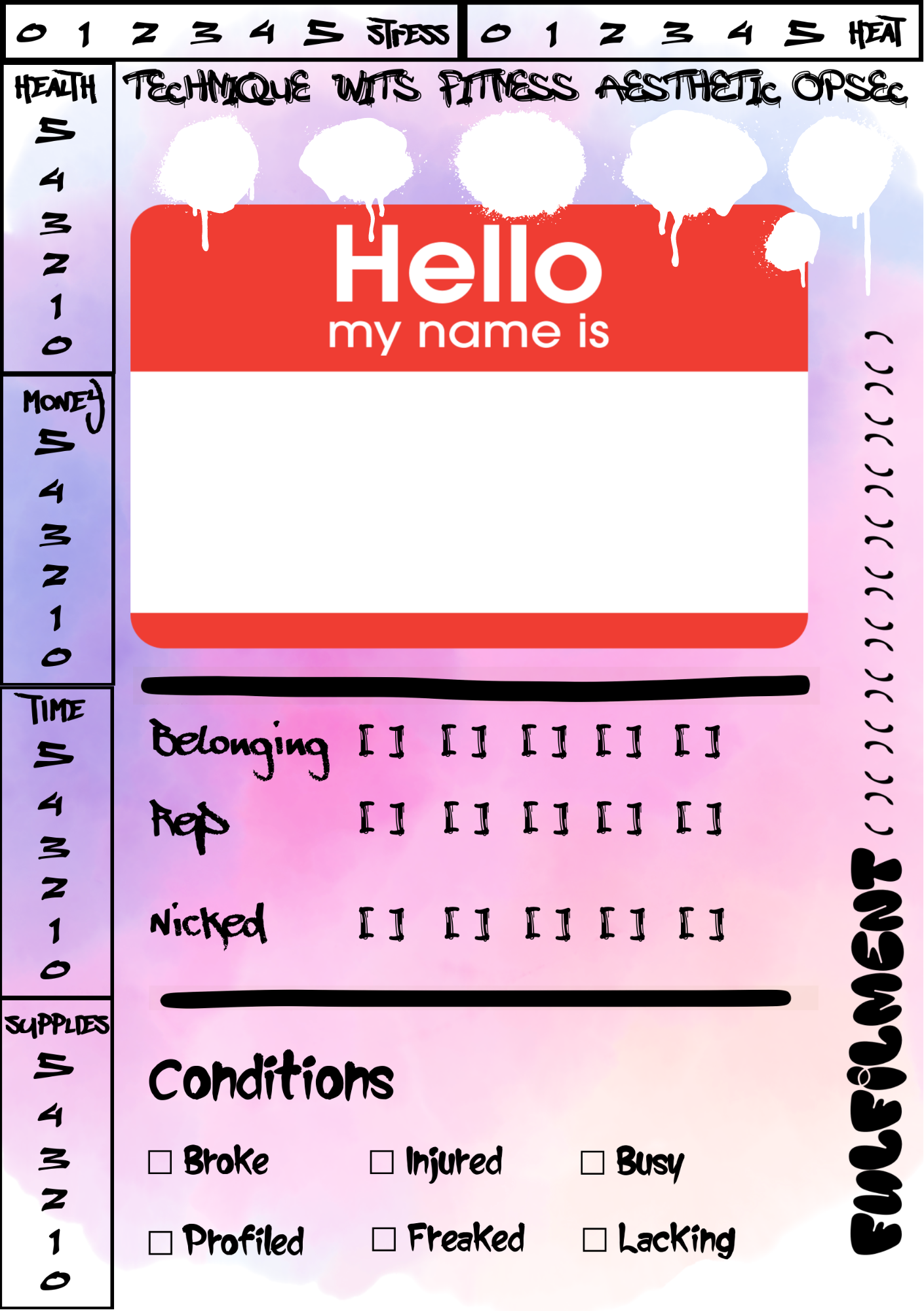 Each time a player is doing graffiti, they potentially risk wasting their supplies, time, or money, or more likely risk their physical health and mental health, or worse by becoming a target of the law.