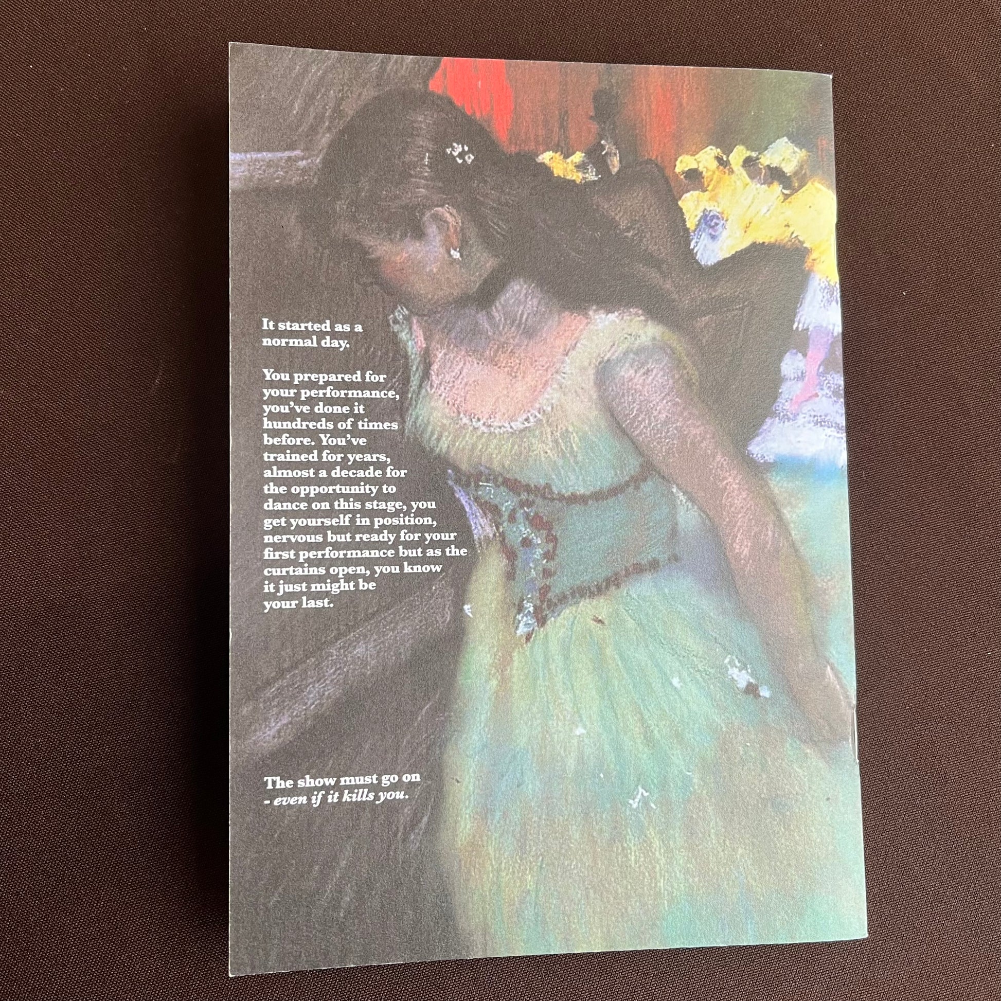 It started as any normal day, you prepared for your performance, you’ve done it a hundred times before. You’ve trained for years to get to dance on this stage, you get yourself in position, nervous but ready for your first performance but as the curtains open you know it very well might be your last.