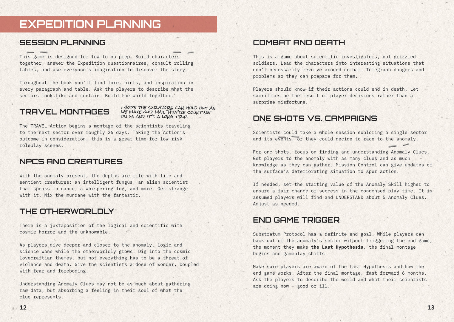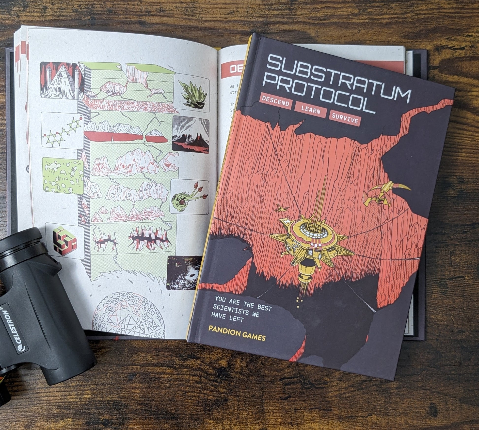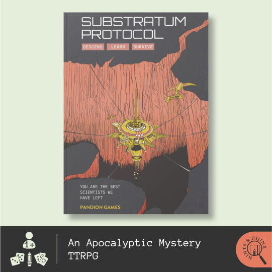 A solo+ survival mystery RPG using step-down dice and card draw mechanics, Substratum Protocol is playable as both a solo game or guided by a GM for 2–6 players.