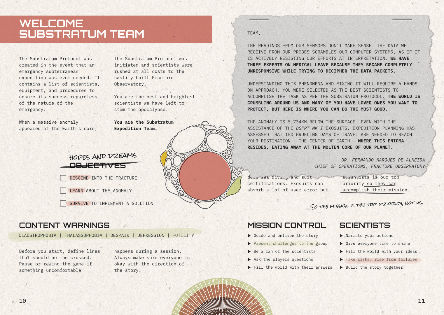 When the anomaly appeared at the Earth's core, the Substratum Protocol was initiated. You are the best and brightest scientists we have left, our last hope to stem the apocalypse. You are the Substratum Expedition Team. Descend. Learn. Survive.