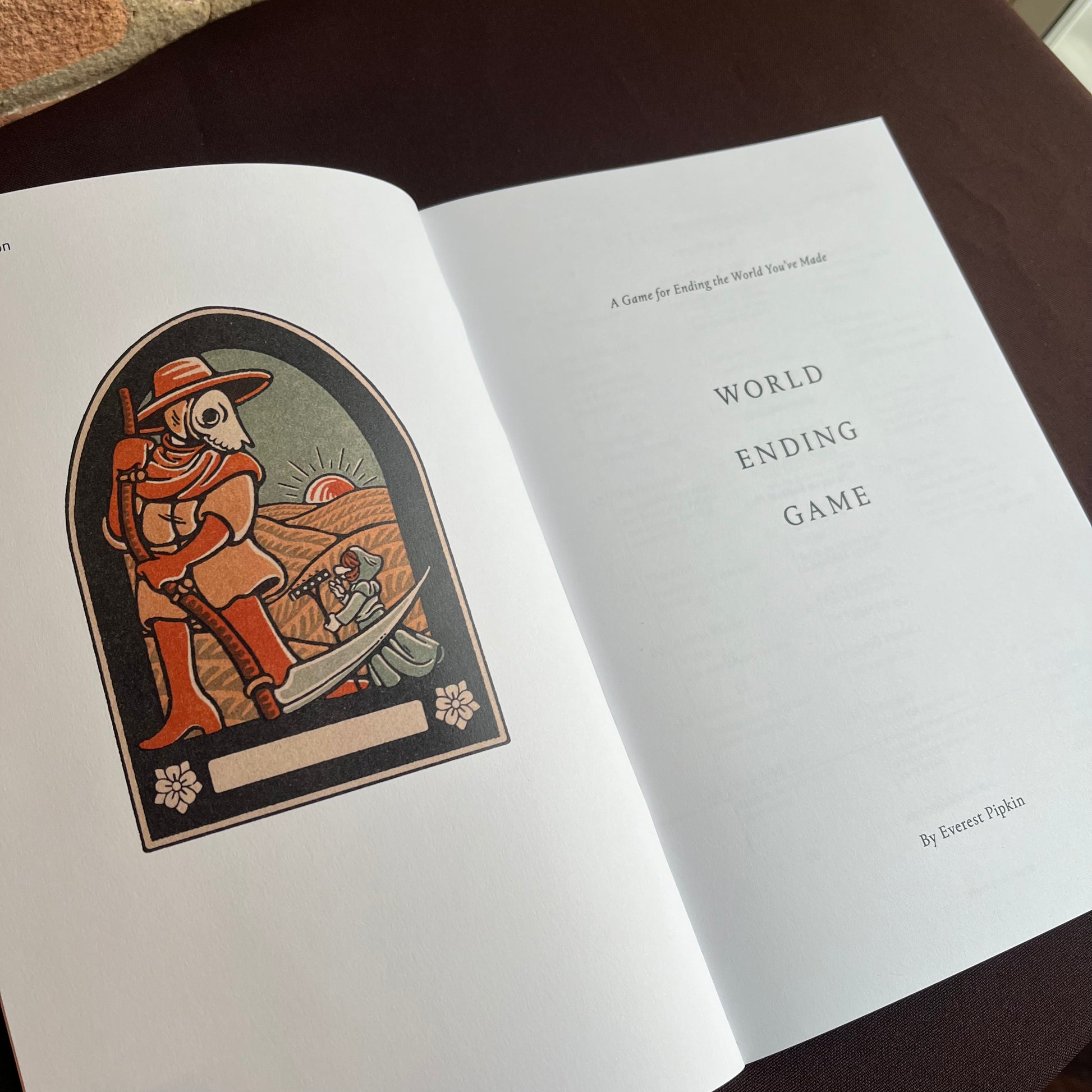 World Ending Game is a falling-action game. Many existing game systems excel at climactic final battles or big-stakes adventures, but don’t allow you to sit in the aftermath, thinking about all that has come before and imagining what could come after. World Ending Game is a tool to let you do just this; gather your things, say what you need to say, and walk away from the story you’ve been telling with confidence and pride.